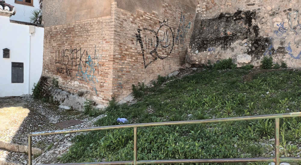 Venimos mostrando las pintadas que vandalizan las murallas y puertas de la antigua alcazaba zirí: el Arco de las Pesas, la Puerta Monaita, la Puerta Elvira,… hoy mostramos un torreón de esa casi milenaria muralla, el torreón de la Chaca, en la calle-plazoleta de este nombre, a espaldas del Centro de Salud, que como puede verse también ha sido objeto de esta plaga que degrada el Albayzín.