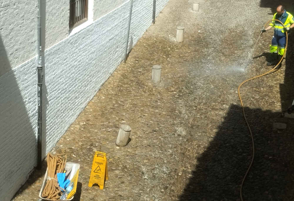 Este año hemos visto como el servicio de limpieza actuaba en diferentes calles del barrio, muy especialmente en la zona de Plaza Nueva y Carrera del Darro, con un despliegue de recursos humanos y medios, que pagamos entre todos. También en otras zonas con desigual efecto y no en todos sus tramos (San Juan de los Reyes-Cárcel Alta o Cuesta San Gregorio-San José).