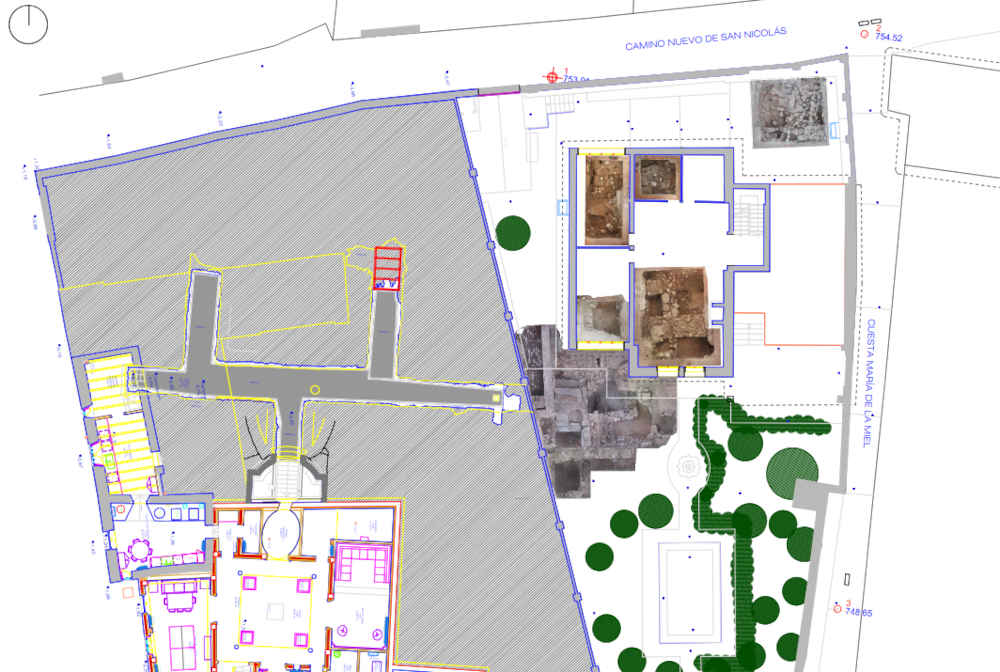 extensión de la galería principal del criptopórtico (Galería 1) y su desarrollo por la parcela de c/María la Miel nº3 a partir de la plataforma inferior aparecida en la fase I. También determinar si existen otras galerías transversales que, junto a las documentadas, conforman una red o trama de la subestructura que sustenta la plataforma del foro, y comprobar la extensión total del criptopórtico además de su vinculación con la trama urbana, entendiendo que podría existir una relación entra la actual y la de época Antigua, especialmente con respecto a la c/ María de la Miel, como uno de los antiguos decumanos. Finalmente, no menos importante era la toma de datos para analizar el estado de conservación de cara a su protección y puesta en valor en futuras actuaciones en la parcela.