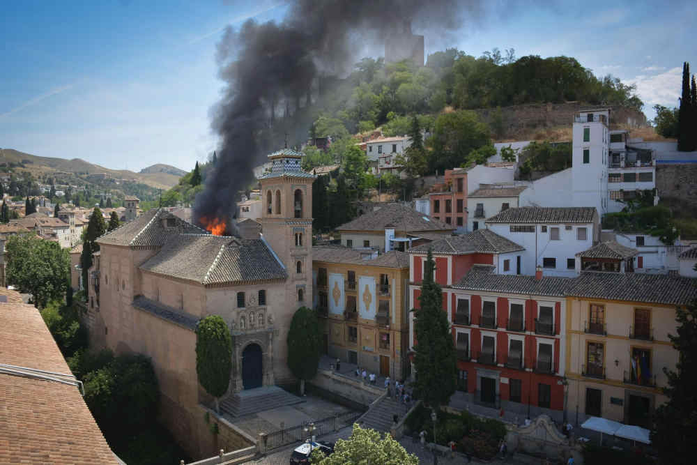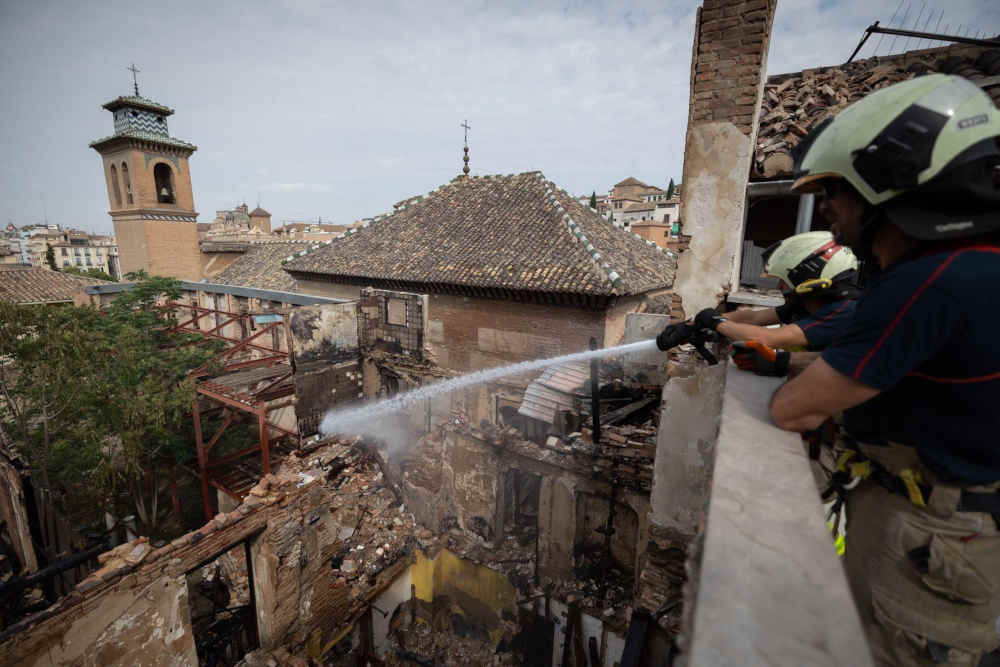 El jefe de Bomberos de Granada, Gustavo Molino, ha explicado que, para evitar que las llamas pudiesen entrar en la iglesia han actuado en primer lugar cerca de una de las ventanas frente a la fachada principal del edificio en llamas, en la calle Santa Ana, que por la alta temperatura que emanaban las llamas, amenazaba con romperla y propagar el fuego a su interior, algo «que hemos conseguido parar a tiempo». Se confirma que el incendio afecta a parte de la estructura del edificio en llamas y que «se ha hundido parte de la cubierta».