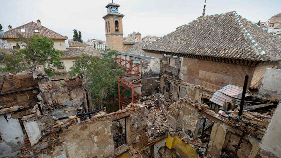 El Ayuntamiento de Granada ha instado a los propietarios del edificio incendiado el pasado lunes en la trasera de la iglesia de San Gil y Santa Ana, junto a Plaza Nueva, en el centro histórico de esta ciudad andaluza, a promover los arreglos necesarios para evitar nuevos derrumbes en el inmueble o riesgos para la seguridad en general en la zona, así como las tareas de desescombro necesarias.