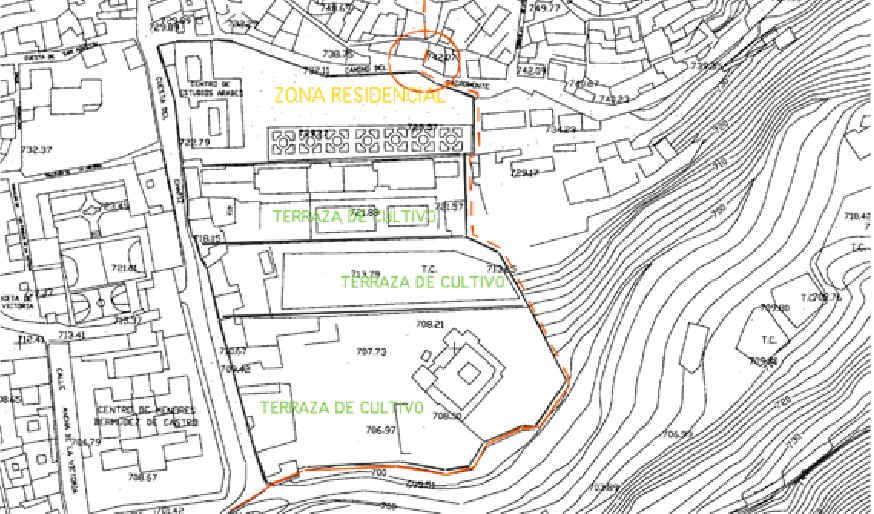 Del análisis de todos estos datos históricos y de los resultados de la excavación más el parcelario actual planteamos como hipótesis que pertenecieron a dicha finca los tres aterrazamientos que existen entre la zona residencial y el cauce del Darro, cerrado por la muralla de la ciudad. A este momento pertenece la construcción el muro de contención Sur y se procede a rellenar para construir una gran terraza de cultivo. El proceso constructivo se ha documentado minuciosamente y comprobamos como existe una fuerte relación entre la fábrica y los aportes antrópicos, debiendo ser considerados como elementos constitutivos de la propia obra. La cronología viene determinadas por la homogeneidad temporal que presentan los artefactos que recuperamos en los distintos rellenos, desde la base hasta la coronación, todos de época nazarí. Comprobamos por medio de la Lámina histórica como en 1871 todavía se mantenía la fisonomía general de la finca islámica siendo visibles las tapias de argamasa, algo que también corrobora M. Gómez-Moreno en su guía de Granada. Incluso hoy día todavía se puede observar que queda un tramo de la fábrica original tras las edificaciones de las Escuelas del Ave María que muestra gran semejanza con el muro sur, lo cual demostraría que se trata de la misma fábrica.