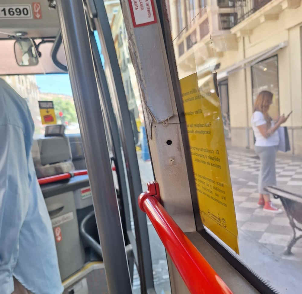 Otra fechoría más. Continuando con el malísimo mantenimiento que reciben nuestros autobúses, 31 y 34, el día 11 de julio aparece un 31 con el timbre arrancado.
