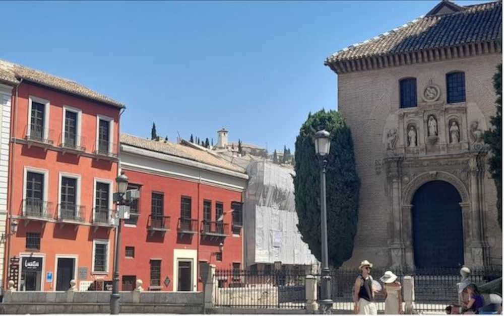 Esta curiosa imagen se ha producido estos días porque han derribado la torreta que había sobre la casa número 7 de la Carrera del Darro. Está en pleno desmontaje de elementos inestables para reconvertir el edificio en viviendas. O quizás apartamentos turísticos. Llevaba muchos años cerrada y deteriorándose.