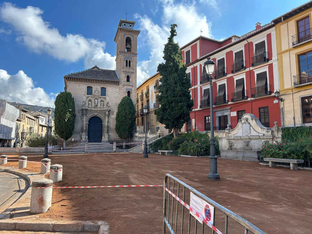 Las no pocas personas que pasen estos días por la céntrica y turística Plaza de Santa Ana, junto a la iglesia del mismo nombre, en el inicio de la Carrera del Darro, se van a sorprender con la imagen que presenta: una capa de tierra cubre toda la plaza, dejando una imagen inédita y sorprendente. El motivo no es otro que el rodaje de La bola negra, la esperada película de Los Javis, la pareja artística y sentimental compuesta por Javier Ambrossi y Javier Calvo, inspirada en la obra de García Lorca.