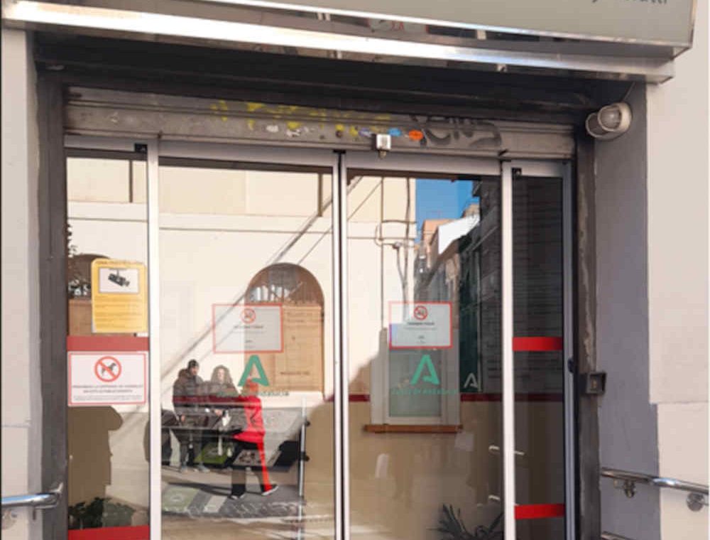 Puerta del Centro de Salud Fortuny-Velutti, en la calle Tinajilla, próximo a cerrar.