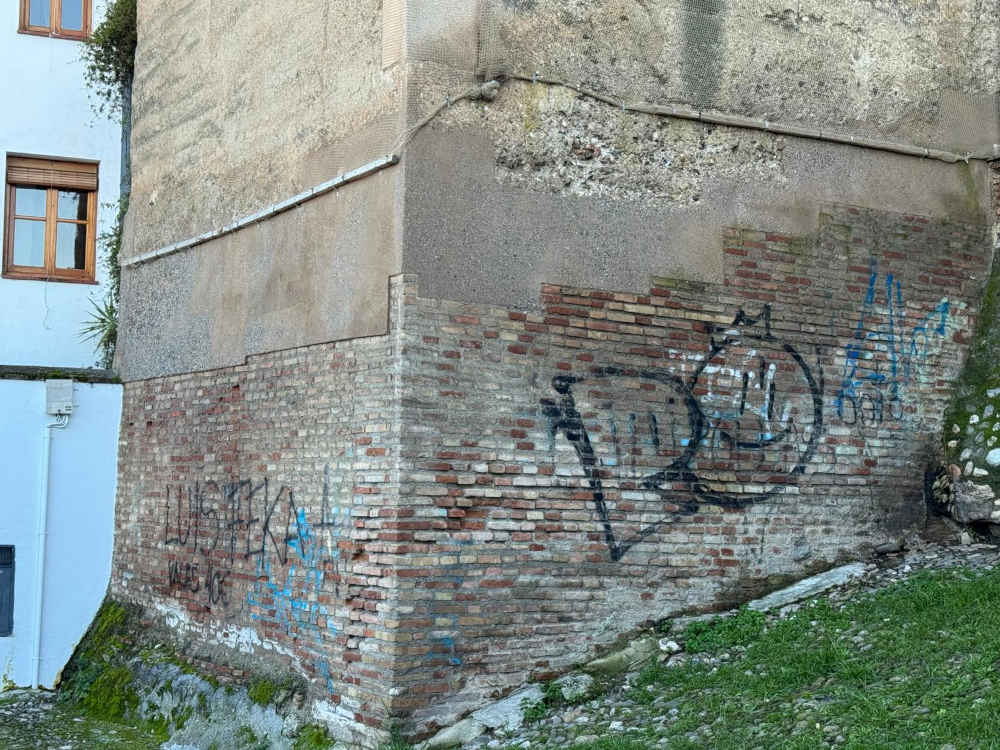 Diez meses llevan sin limpiar las pintadas en el torreón zirí de La Charca