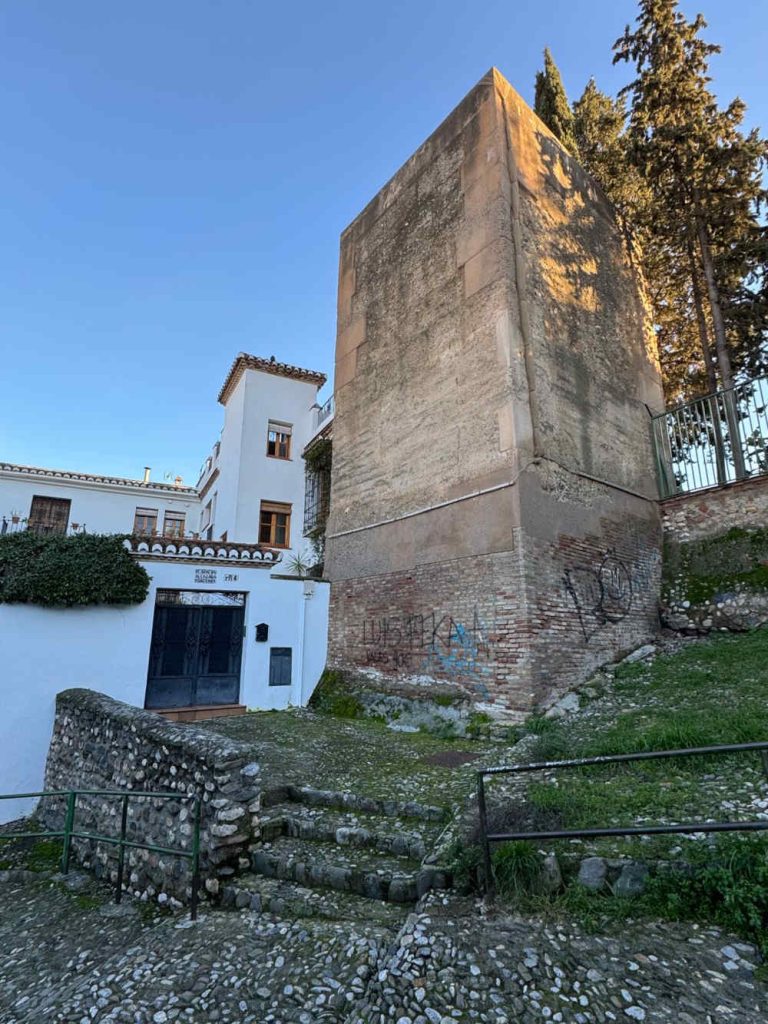 Pintadas en uno de los torreones de la muralla zirí, el de la Charca
