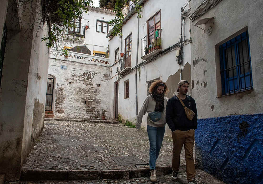 El paso de turistas es constante por la calle Atarazana Vieja y Aljibe del Gato en su trayecto hacia el mirador de San Nicolás, en … pleno corazón del Albaicín. Los visitantes pasean, se detienen para fotografiar el encanto de los callejones y para buscar en Google Maps el camino correcto hacia el parador con vistas a la Alhambra. Pero el gesto de su rostro se tuerce cuando, en mitad de los Cármenes de la zona, encuentran una casa con pocos signos de mantenimiento y con rastro de presencia humana en su interior. Hay edredones, toallas, sábanas o plásticos apilados en un balcón. La puerta está ligeramente abierta y agujereada en la parte inferior, una estampa que se repite en el domicilio de al lado.