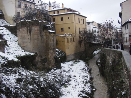Se trata de uno de los grandes paseos, no sólo del barrio sino de la ciudad, y sin duda su calle más pintoresca con el Darro y sus puentes. En el siglo XVII este paseo contaba en las tardes de verano con música de chirimías y ministriles, así como festejos de toros, cañas y sortijas, paseos a caballo,... Durante el siglo XVI se establecieron en esta zona importantes casas señoriales (Castril, Pérez del Pulgar, Carvajal, Serrano de Luque,...) y conventos (Santa Catalina, Zafra, San Bernardo). También en época islámica contó con importantes construcciones como el Bañuelo o el Maristán construido en 1367 y convertido en Casa de la Moneda demolida en 1844 que llegó a emitir papel moneda cosa inusual en la época. También existió un polvorín, junto a la iglesia de San Pedro, destruido por una explosión. Al final el puente de las Chirimías o de Monte Pío, derribado por una gran avenida en la noche del 17 de enero de 1881 y reconstruido en 1882. En sus inmediaciones se fundó el primer Monte de Piedad en 1734. La Carrera del Darro se llamó en otro tiempo Carrera de la Puerta de Guadix por encontrarse al final de la misma, junto al puente del Algibillo, siendo derribada en 1611, cuando aún no existía el Paseo de los Tristes. Hoy cuenta con el Museo Arqueológico o el Centro de Documentación Musical, el Bañuelo y algunas rehabilitaciones interesantes, pero junto a esas actuaciones vemos como día a día se cometen atropellos urbanísticos que están degenerando este peculiar paseo con andamios, escaparates inadecuados, letreros detestables, algunas arquitecturas inadecuadas, aumentos de volúmenes o modificaciones de cubiertas, ocupaciones de su escasa vía pública con tenderetes impropios o un tráfico excesivo y “veloz” peligroso para los numerosos vecinos, granadinos y visitantes que continúan manteniendo este importante paseo de Granada. |