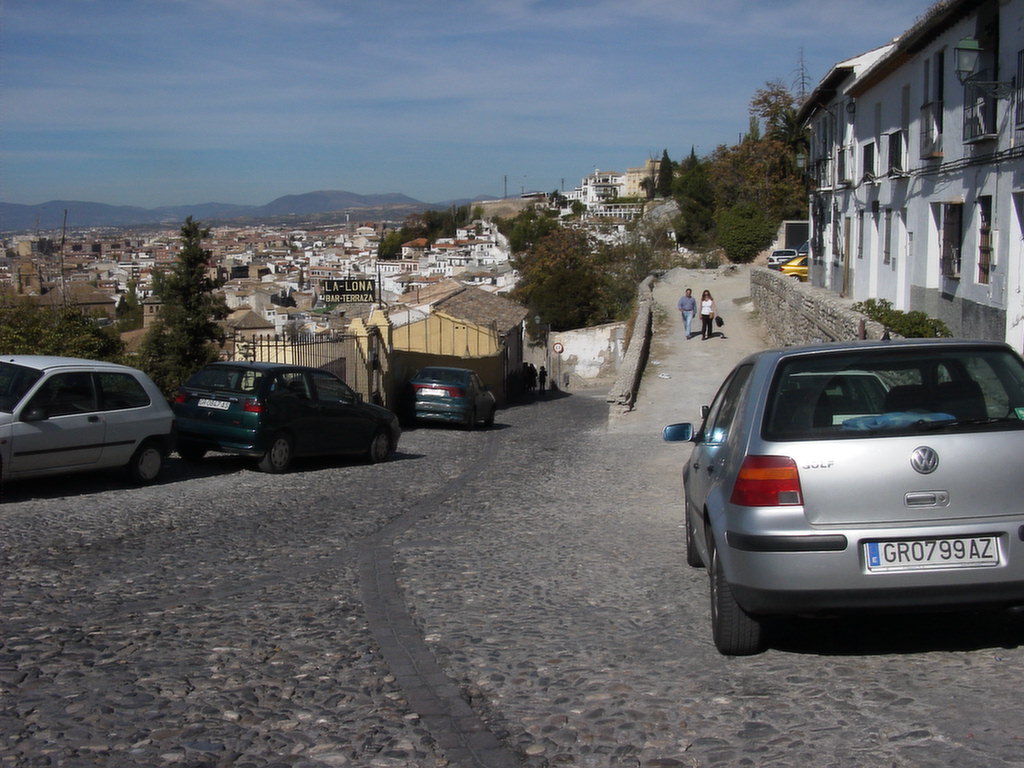 Sube desde la Cuesta de la Alhacaba a las Vistillas de San Miguel. En el solar que fue del palacio del rey Badis, que pasó a propiedad de los frailes trinitarios quienes en el siglo XVIII lo vendieron al comerciante Juan Andrés Gómez, en cual instaló unos telares donde se fabricaban velas para los barcos, maromas, cordelerías en general y demás productos del cáñamo, cuyo cultivo estaba muy extendido por la Vega, de la importancia de esta industria dará idea el hecho de haber trabajado en ella quinientos asalariados. El mirador correspondiente de La Lona da una gran imagen de la ciudad y la cada vez más reducida Vega, así como el conjunto de montañas que rodean esta depresión. Actualmente se encuentra bastante degradada por el paso de camiones que han deteriorado los pretiles y el muro de contención, habiéndose denunciado esta situación de importante peligro. |